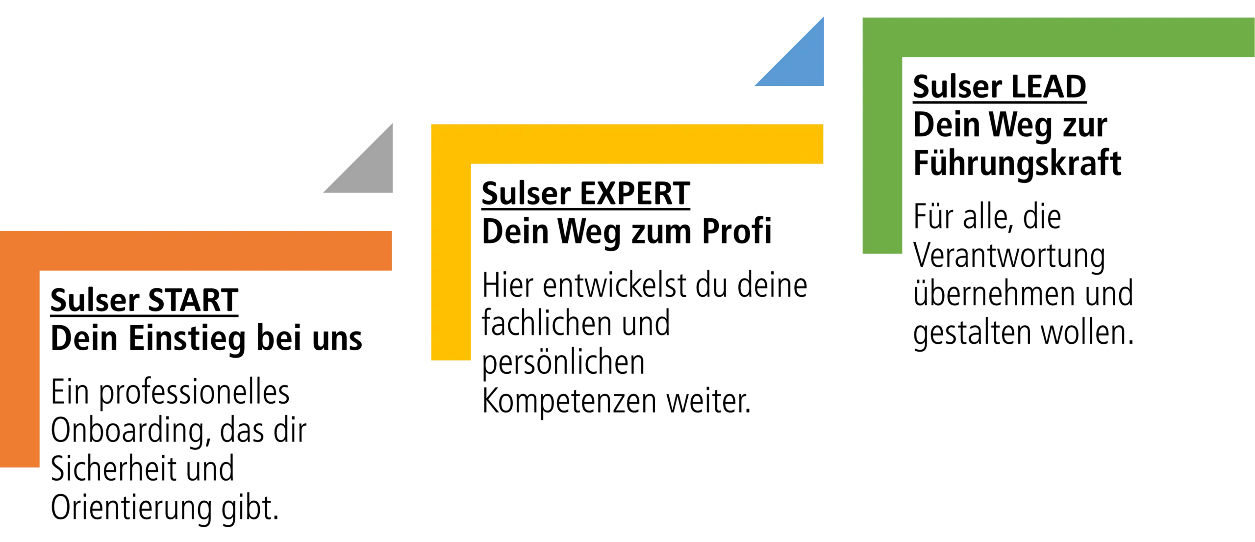 Die Sulser Academy ist unser internes Entwicklungsprogramm für alle Mitarbeitenden der Sulser Group. Wir investieren bewusst in Menschen – denn sie sind das Fundament unseres Erfolgs. Die Academy bietet dir Orientierung, Sicherheit und echte Karrierechancen. Egal ob du neu einsteigst, deine Fachkompetenz vertiefen möchtest oder den Schritt in die Führung planst: Wir unterstützen dich auf deinem Weg.